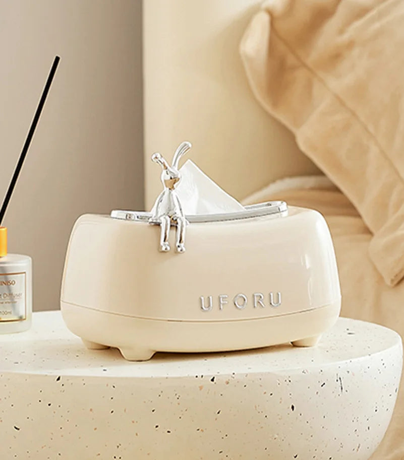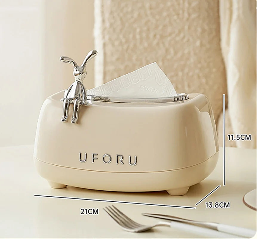 Description: Spring tissue box, living room coffee table bedroom table paper box, cream wind cute rabbit decorative paper box.